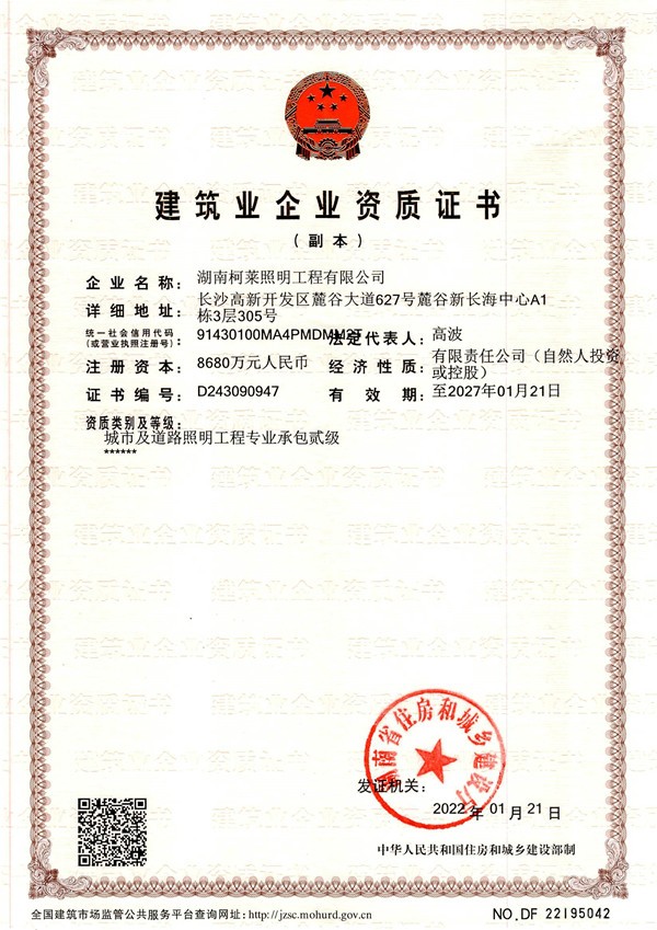 祝贺湖南taptap,taptap官方网站,taptap登录入口照明工程有限公司成功获得二级建筑企业资质证书