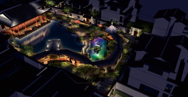 湖南江苏无锡桃花源中式合院样板区亮化设计
