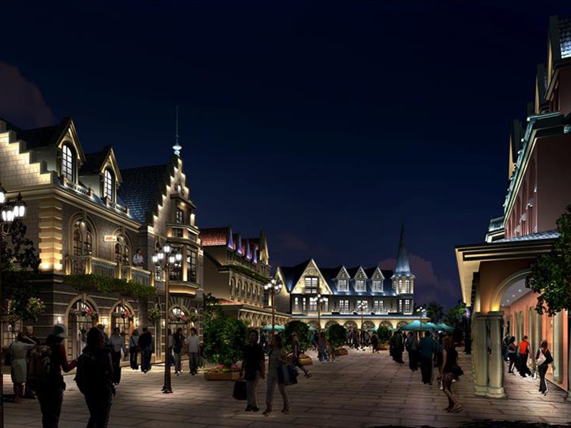 欧式建筑商业街夜景效果图-湖南亮化设计公司
