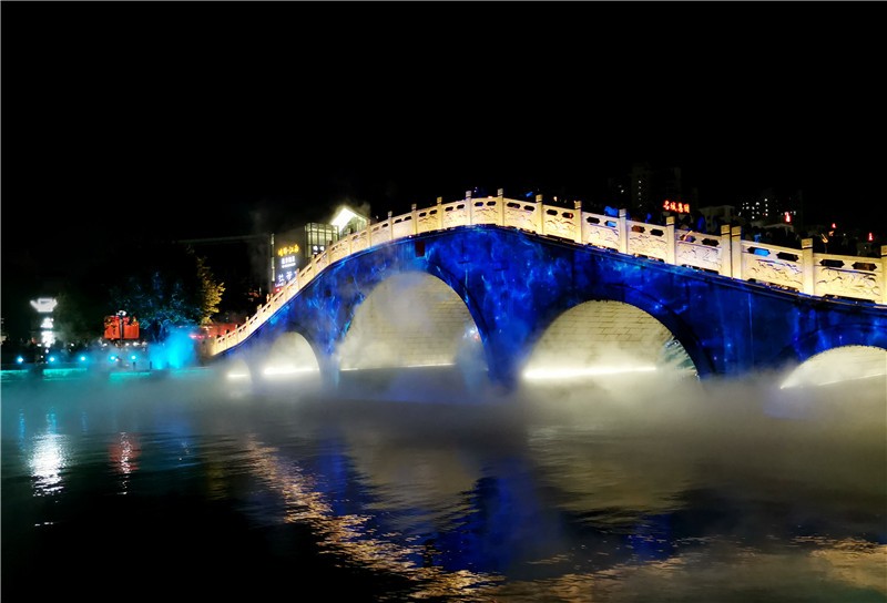 景区夜景亮化用光有单色光和多色光之分,以高明度低彩度为宜。高彩度光色,如粉红色容易产生“跳”的感觉,很少采用。在色彩搭配方面,景区夜景亮化通过色彩的亲切、热烈、庄重、远近、轻重等视觉或心理感受,表现出各种不同需要的夜景环境氛围。照明色彩应呈现多样性或多变性。
