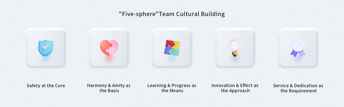 As part of the company is team culture, it has established the "Five-sphere"goals of building a "safety-oriented, harmonious and friendly, learning and innovation-driven, and service-oriented" team. The company has effectively improved team management by means of reaching team standard activities, evaluating and awarding demonstration teams, organizing site observation and learning exchanges. It has made great achievements and accumulated rich experience in team culture construction.